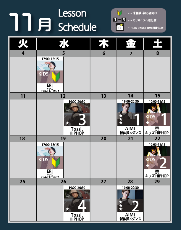 11月レッスンスケジュール・予約スタート!🍂